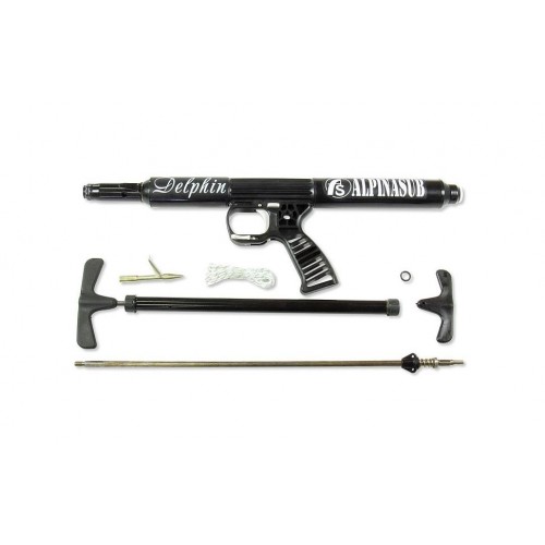 Подводные ружья серии «Дельфин» предназначены для спортивной стрельбы в водоёмах: реках, озерах, прудах и море. Класс – пневматические подводные ружья. К особенностям можно отнести тот факт, что накаченный воздух в камеру не расходуется при выстреле, и служит своеобразным аккумулятором энергии при перезарядке, что позволяет длительное время охотиться без подкачки, а следовательно – нет нужды выходить постоянно на берег и пользоваться насосом. Отличительной чертой относительно импортных ружей является система заднего зацепа гарпуна при помощи специальных шариков, обеспечивающих мягкий спуск и отсутствие подброса во время произведения выстрела. На подводном ружье Delfin имеется предохранитель в виде кнопки, автоматический линесбрасыватель и современный клапан закачки воздуха. В комплекте также идёт удобный насос. Рукоять имеет эргономичную форму с отверстиями для выхода воды. Специальный амортизатор с резинками сохраняет долговечность поршня. Покрытие – долговечная итальянская порошковая краска, благодаря чему создаётся защищающий от коррозии и механических воздействий слой.